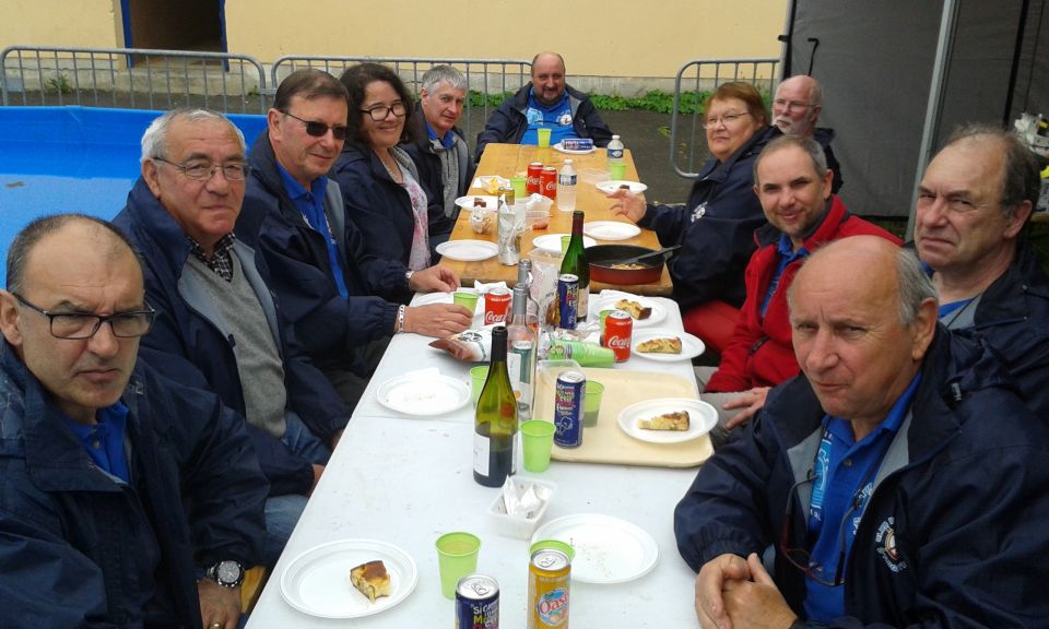 Apres avoir apporté tout le matériel sur les lieux le samedi matin, aussi bien ferroviaire que naval, on commence par prendre des forces !